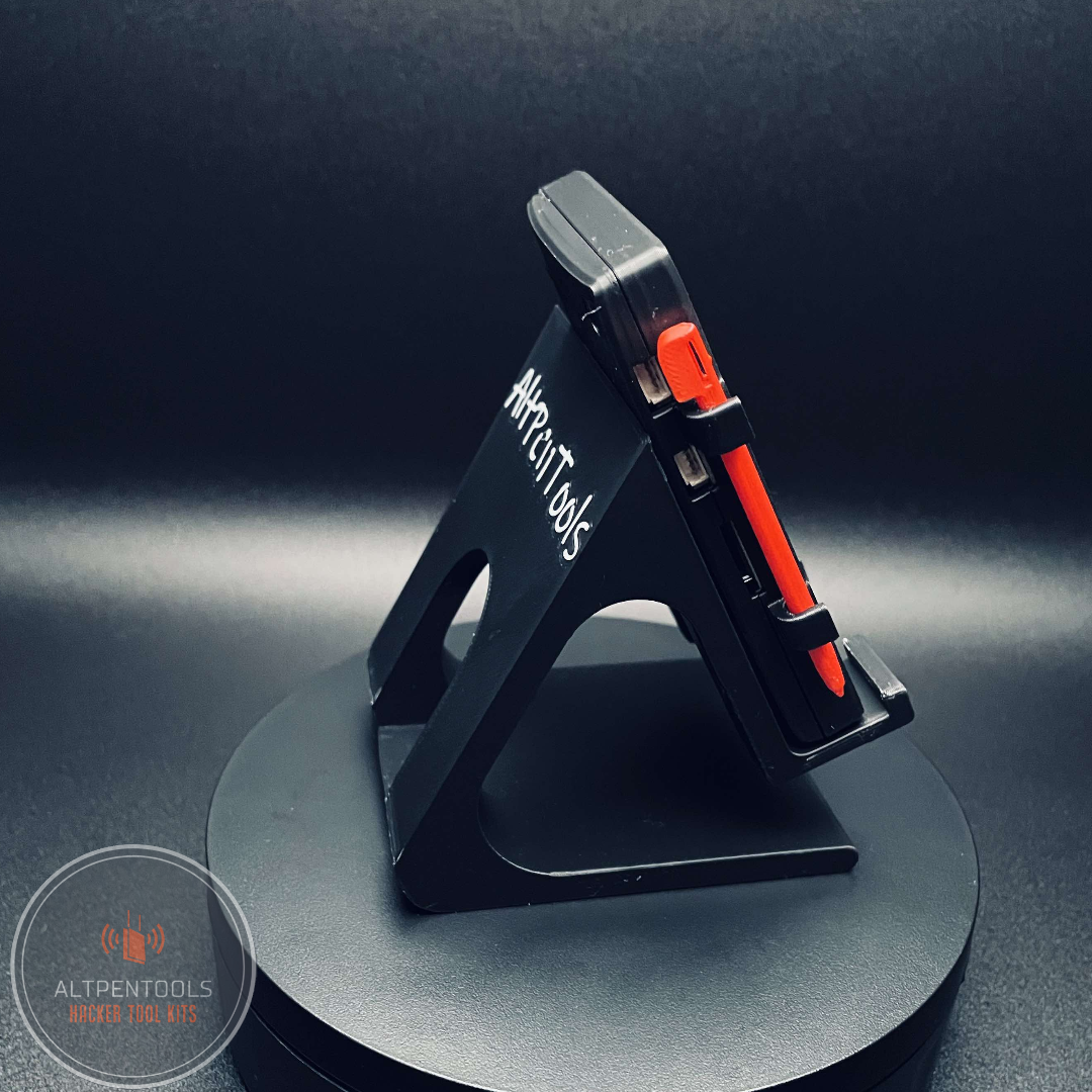The device is built on the ESP32-WROOM platform with a 2.8' touchscreen Display. The LED on the back changes color depending what you are doing Sniffing, Attacking Ect.