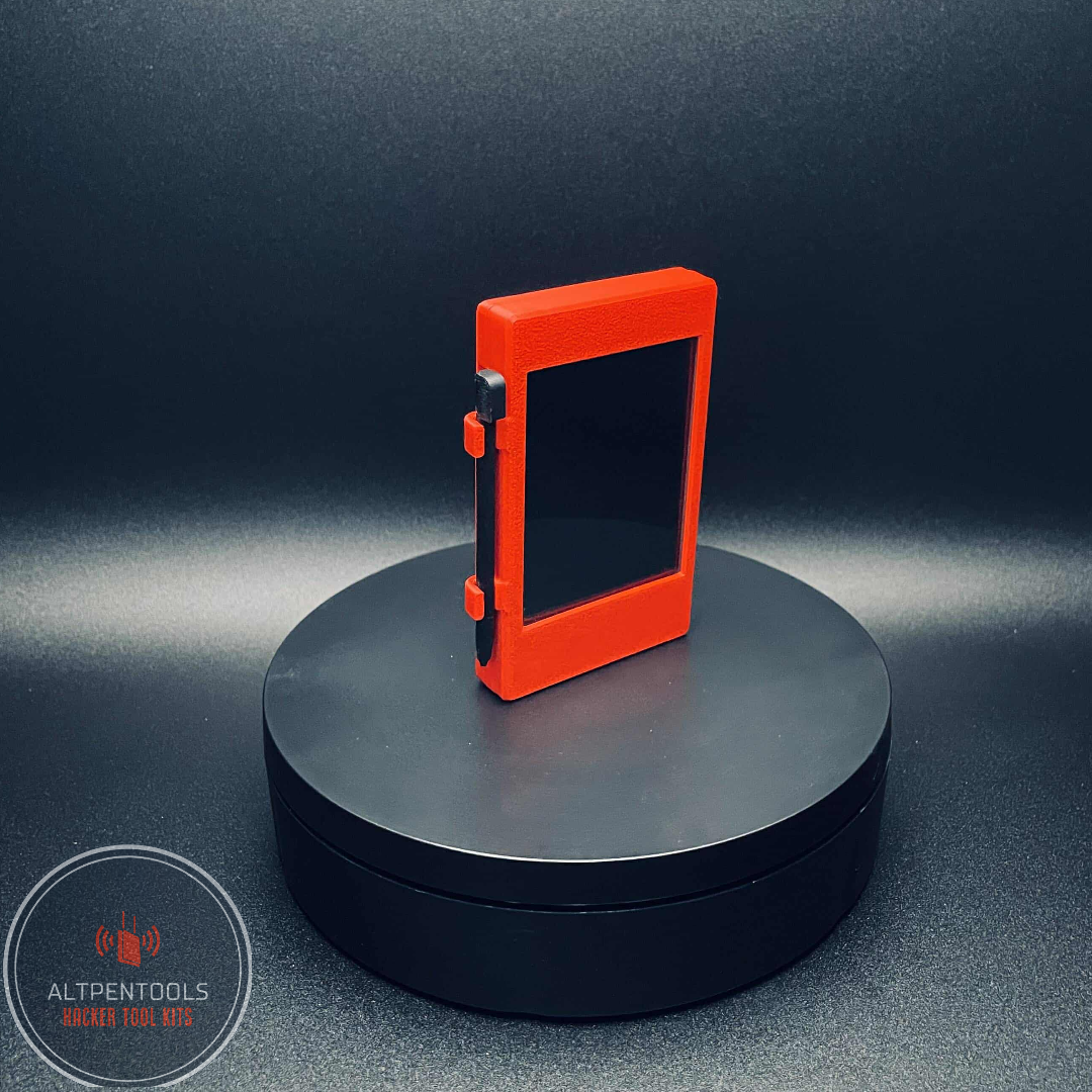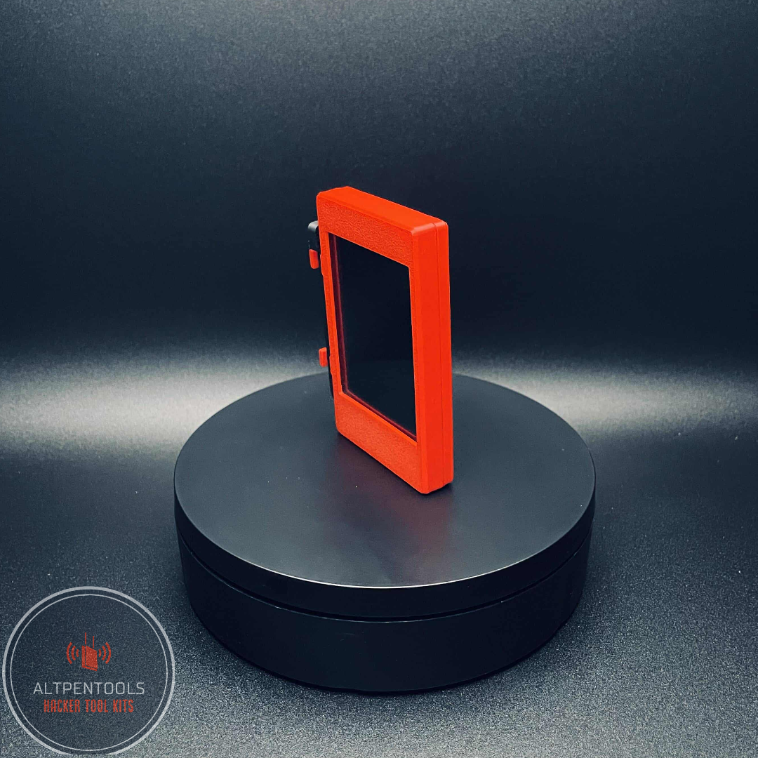 The device is built on the ESP32-WROOM platform with a 2.8' touchscreen Display. The LED on the back changes color depending what you are doing Sniffing, Attacking Ect.